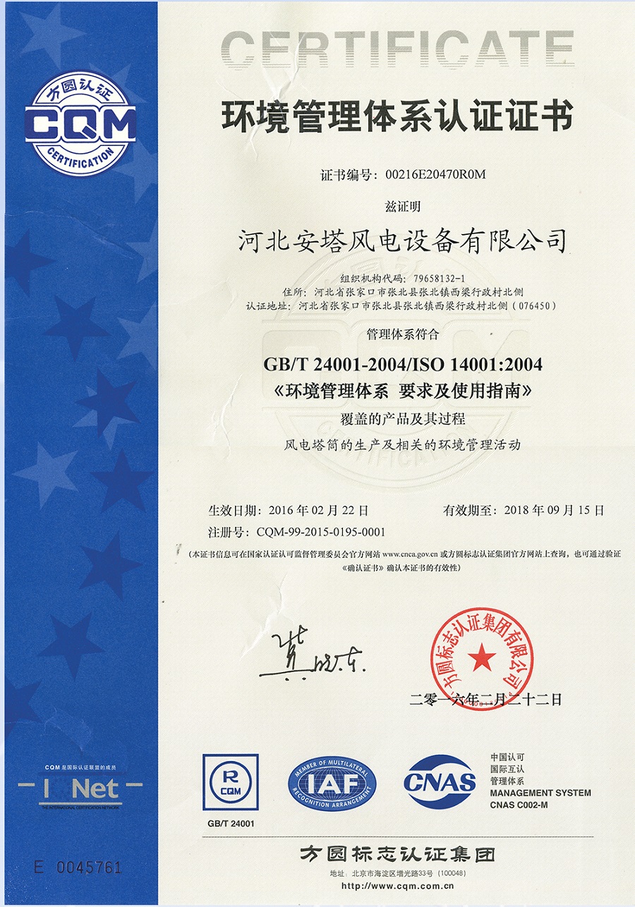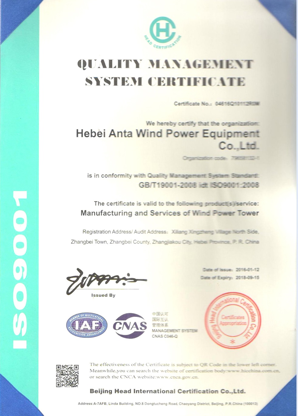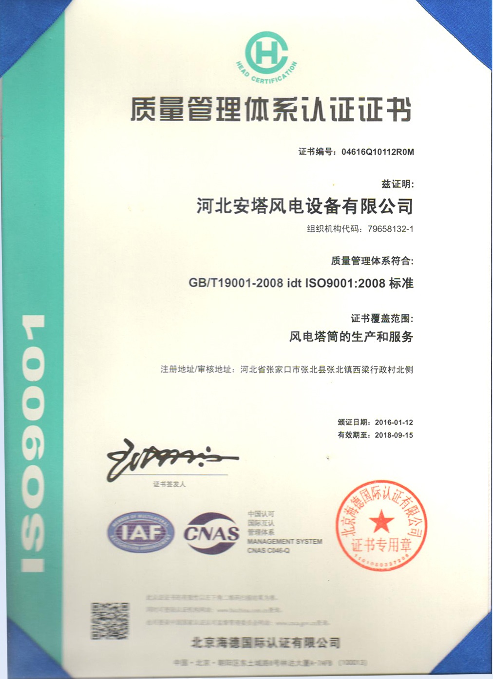 河北安塔風電設備有限公司是一家專業從事生產兆瓦級風力發電機組塔筒及配件的民營企業,并在康保設立了分公司,公司以優質、誠信、合作、共贏的企業理念;以與人為善、以人為本、開拓創新、跨越發展的企業精神,以專業、齊全的設備,高效、穩定的團隊,優勢的位置和運輸實現著公司的奮斗目標。創造出了可喜的業績,受到了業內的認可和廣泛的好評。